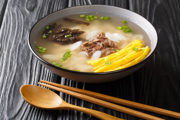 The white color of the tteok supposedly signifies purity. In the past, this meal was only eaten during Korean New Year. However, nowadays, you can find in restaurants all year round.